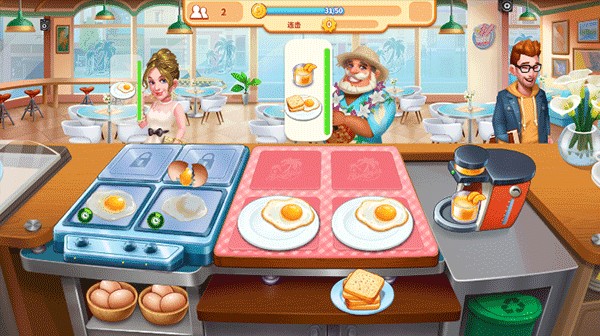 2、能够不断解锁更多美食,提升烹饪技巧,成为真正的大厨。